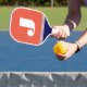 Dieses mit Monogramm Pickleball-Paddel ist einfach, modern, minimalistisch, aber kühl und farbenfroh mit seinen marineblauen und orangen Streifen und Ihrem ersten oder letzten Start in Weiß.