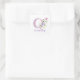 Identifizierungsaufkleber. Das Design bietet Monogram & Name mit Blume beiderseits in einem pastellfarbenen Aquarell-Stil. Beispielname ist Quincey. Kann für jeden sein, der einen Namen hat, der mit Q beginnt.