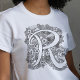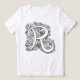 Monogram Letter R doodled Hand gezeichnet Linie Art T - Shirt. Ideal zum Einfärben, Sticken oder einfach als Kontur Mono Buchstaben R Design behalten. © Original ink zeichn mit R-Rose, Regenbogen, Kaninchen, Raketen und Himbeeren Buchstaben Kunst und Design von Sarah Trett. www.sarahtrett.com für www.mylittleeden.com