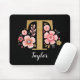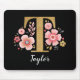 Ein wunderschönes, mit Monogramm, rosa Blumenmousepad mit rosafarbenen Blume und einem Imitat mit einem goldenen Buchstaben T auf schwarzem Hintergrund. Personalisieren Sie das Mauspad, indem Sie unter dem Monogramm Ihren Namen hinzufügen. Macht ein lustiges Geschenk für einen Freund oder für eine Brautjungfrau. Entworfen für Sie von BlackBerry Boulevard.