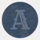 Dieser personalisierte rustikale Rundaufkleber mit einem Imitat blauer Ledertextur-Hintergrund und einem mit Monogramm Vorgeschmack für Ihre persönliche Note. Entworfen von dem weltbekannten Künstler ©Tim Coffey.