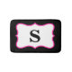 Fügen Sie Ihrer Wohngestaltung einen farbenfrohen, stilvollen und trendigen Dekorationsakzent mit diesem individuell angepassten Teppich zu Ihrem Monogramm-Initial hinzu. Die Matte ist schwarz mit einem weißen Serpentinemblem, das in hellrosa Fuchsia umrissen ist, um sie mit Ihrem Monogramm zu personalisieren. Passen Sie Ihre Initialen in der Mitte für einen stilvollen und trendigen Teppich an. Vollständig anpassbar, um einen raffinierten Akzent auf Ihre Dekoration zu machen.