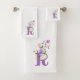 Das Design enthält Monogram plus Blume in einem Blumendesign. Ursprünglich ist der Buchstabe R. Persönliches Handtuch Set.