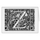 Ce premier Z fait partie d'une série complète d'initiales majuscules de typographie inspirées par William Morris. Le lettrage noir et blanc est fortement décoratif, dénommé après la typographie de fantaisie des Moyens Âges. Mignon et à la mode, c'est un monogramme chic vintage Z - marquez avec des lettres z Z. Customize tourbillonnant ce monogramme vintage Z en changeant la couleur d'arrière - plan ; choisissez juste la "personnaliser" sous l'image du Z initial, et choisissez la couleur sur "la couleur imprimée d'arrière - plan" du côté droit. Il y a un alphabet complet de ces lettres. Si vous avez besoin d'une lettre différente, visitez svp le magasin d'antiqueart.