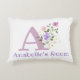 Initial & Nom avec Floral Design. Le design présente le Monogramme & Nom du destinataire avec Fleurs de chaque côté dans un style pastel couleur eau. Initial est la lettre A. Exemple montre Annabelle. Le design apparaît de part et d'autre.