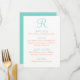 Menu bleu et orange d'oeufs simples et élégants de Robin de mariage avec votre initiale de monogramme. Personnaliser avec vos commandes de menu de mariage. Employez la "personnaliser il" pour plus d'options et d'espacement de édition. Notez svp : Le menu imprimera comme vu sur l'écran. Aucune édition une fois qu'on l'ajoute au chariot. Pour des couleurs ou l'aide différentes veuillez entrer en contact avec luxuryweddinginvitations@gmail.com