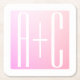 Initialen des Paares | Subtile Pink Gradation Rechteckiger Pappuntersetzer