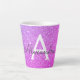 Luxuriöse Lila und rosa Ombre Sparkle Glitzer Girly Chic Monogram Name und Initial Latte Coffee oder Tee Tasse. Die mit Monogramm Tasse macht das perfekte Brautparty, Junggeselinnen-Abschied, Sweet 16 Geburtstag oder Weihnachtsgeschenk für jemanden, der Rose Gold Liebe.