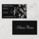 Modèle vintage noir et blanc damassé. Beau blanc ornemental Élégant damas vintage sur noir. Personnalisez et customisez le carte de visite avec votre initiale et votre nom.