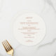 Ce modèle de carte circulaire propose un ensemble de polices contemporaines en ocre, contre un arrière - plan chic en ivoire. Le dos de la carte comprend des initiales de couple et de délicats détails de feuillage.