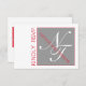GRIS, ROUGE ET BLANC, DEUX INITIALES ENTRELAACÉES, RÉPONSE DE MARIAGE MODERNE. ELKE CLARKE© POUR MONOGRAM GALLERY. UN CHOIX PARFAIT POUR VOTRE CARTE D'INVITATION DE MARIAGE. UNE MISE EN PAGE SIMPLE, DES LIGNES ÉPURÉES ET L'UTILISATION D'UNE POLICE MODERNE ET D'UNE ÉCRITURE CHIC POUR VOS INITIALES, DONNENT À CE DESIGN UNIQUE ET HARDI UNE TOUCHE FRAÎCHE. DESIGN POLYVALENT POUVANT ÊTRE UTILISÉ POUR UN MARIAGE D'ÉTÉ OU D'HIVER OU TOUTE AUTRE SAISON. UTILISEZ LES INVITATIONS MAIS SÉLECTIONNEZ ENSUITE "PERSONNALISER" POUR AVOIR PLUS