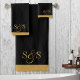 Élégant monogramme personnalisé en or initials de script et serviette de bain noire ensemble avec un bord doré. Rafraîchissez votre décor de salle de bain avec un style typographique minimaliste. Unique chic moderne.