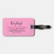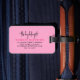 Erstellen Sie Ihre eigene stilvolle moderne Custom World Traveller Girly Bright Pink Name Monogram Gepäckmarke. Dieses kühne und schicke Gepäckanhänger verleiht jedem Reiseabenteuer eine unterhaltsame und personalisierte Touch, perfekt für den Reisenden der Welt oder für alle, die unterwegs eine kleine Glaskugel Liebe haben. Die Vorderseite ist mit einem schwarzen Serif-Set vor einem lebendigen, hellrosa Hintergrund versehen. Ihr Name ist in schwarz handgeschriebenen Schriften, die in der Mitte für eine moderne, gürtelhafte Atmosphäre angeordnet sind. Die Rückseite hat einen passenden hellrosa Hintergrund mit schwarzem Text, der in einem Skript-Schriftart den Satz "This bag gehört zu" enthält. Ihr Name wird in magenta hervorgehoben, während die Erholung der Kontaktinformationen in schwarzen Serif- und Script-Schriftart für einen stilvollen Kontrast angezeigt wird. Alle Farben können individuell angepasst werden, sodass Sie den Hintergrund, das Monogramm, den Schriftart oder die Textfarbe entsprechend Ihrem persönlichen Stil ändern können. Dieses individuelle Gepäckanhänger macht Müttern, Studentinnenverbindungen, Müttern oder Reiseliebhabern einen Spaß und macht sie praktisch zum Geschenk - ideal zum Geburtstag, zum Urlaub oder einfach nur, weil.