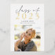 Die schlichte und moderne Ankündigung des Foto Abschlusses zeigt die "Klasse des Jahres 2022" in Goldfolie mit dem Namen und der Schule Ihres Absolventen darunter. Ideal für Abschluss mit High School, Uni oder fortgeschrittenem Abschluss. Fügen Sie der Rückseite eine persönliche Nachricht und ein zusätzliches Foto hinzu.