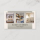 Visitenkarte mit 4 eigenen Fotos in einem Portfolio Ihrer Lieblingsprojekte, gerahmt durch ein neutrales graues Design auf Ihrer eigenen Hintergrundfarbe. Diese Visitenkarte kann leicht an andere Berufe angepasst werden.