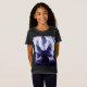 T - Shirt mit Innocence Fairy Cat von der Wildtier-und Fantasiekünstlerin Michaeline McDonald von einer niedlichen schwarzen Katze mit leuchtenden lila Flügeln vor einem schwarzen Sternenhimmel.