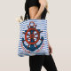 Der gut aussehende Bootanker ist dunkelblau und das Rad des Schiffes ist hell rot. "Shelter Island, NY" liegt unter dem schönen nautischen Kunstwerk, auch in leuchtend fröhlichem Rot. Der Hintergrund ist ein klassischer, blau-weißer Streifen. Zeigen Sie Ihre Liebe für Shelter Island und Long Island mit dieser hellen und kühnen Tasche.