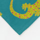 Mosaik, grafisch gezeichnet, aus Gecko-Eidechse, in Reptilen-, Hautfarben in Gold, Fuschia, Limon, aquamarin, braun und schwarz dargestellt.