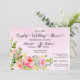 Jolie invitation de mariage avec des inséparables et des fleurs roses - facile à mettre à jour texte.