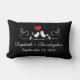 Inséparables mignons modernes oreillers à lancer personnalisés avec une mignonne paire d'inséparables assis sur une branche fleurie avec un coeur fixé sur un arrière - plan noir jet. Personnalisez avec vos noms et date mariage .... Le dos du coussin présente le même graphisme inséparable chic et peut être personnalisé avec un doux dicton d'amour. Disponible dans notre boutique dans un large assortiment de couleurs.