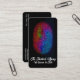 Une empreinte digitale sous un blacklight sur un arrière - plan noir. Il s'agit d'un carte de visite pour les enquêteurs privés, les agences de détection ou les professionnels de la sécurité La carte peut être facilement modifiée (pour entrer dans le nom de votre entreprise, le texte pour dire, nom, titre, adresse, numéro de téléphone et adresse électronique). Vous pouvez également ajouter ou supprimer du texte assez facilement. Par exemple, vous pouvez ajouter une URL de site Web ou d'autres informations importantes. Personnalisez ceci pour en faire votre propre. Pour des cartes de visite similaires, veuillez consulter : https://www.zazzle.com/collections/business_cards_for_security_industry-119394861492793661 empreintes digitales agent de détecteurs de oeil privé enquêteur de cybersécurité vol d'identité