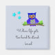 Ein großartiges Zitat zum Üben jeden Tag.. wenn das Leben zu schwer zu ertragen ist, knien! Blauer Hintergrund mit einer kahlem Eule auf einem Ast und kleinen blauen Sternen am Himmel.