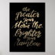 Inspirierend Poster mit der eleganten kalligrafischen Darstellung des aufhetzenden Zitats: "Je größer dein Sturm, desto heller dein Regenbogen." Dieses wunderschön gestaltete Stück dient nicht nur als stilvolles Dekorelement, sondern bietet auch eine kraftvolle Erinnerung, mit der Herausforderungen zu helleren und dynamischeren Ergebnissen führen können. Erhöhen Sie Ihren Platz mit diesem motivierend Poster, wo die Wortkunst auf die Kunst der Widerstandskraft trifft. Ideal, um jedem Raum ein gutes Ambiente zu verleihen. Entdecken Sie unsere Sammlung motivierend Plakate mit inspirierend Zitaten für ihn und sie und vieles mehr. Lassen Sie sich von diesem Poster, das Positivität und Motivation ausstrahlt, in der Dekoration entführen.