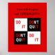 Dieses inspirierende Poster soll Ihnen die Motivation geben, nicht aufzugeben. Seien Sie positiv, seien Sie stark. Das Hauptbild ist "DO IT DON'T QUIT" in roten Buchstaben auf schwarz-weißen Quadraten. Das obige Zitat ist für Ihre eigene Nachricht editierbar und lautet "Mit Absicht und ENTSCHLOSSENHEIT trainieren". Die Hintergrundfarbe für dieses Poster ist ein tiefes, helles Rot.
