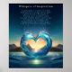 Stellen Sie sich ein Poster vor, das Gelassenheit und Inspiration ausstrahlt und den Betrachter in eine Welt zeichne, in der Natur nahtlos mit Emotionen verschmilzt. Dieses faszinierende Kunstwerk besticht durch eine herzförmige Figur, die ganz aus glänzendem Wasser geformt wurde. Die Kurven des Herzens schimmern mit Fluidität, was die grenzenlose Energie des Lebens und seine Anpassungs- und Transformationsfähigkeit hervorruft. Seine Oberfläche reflektiert die sanften Farben des umgebenden Himmels und deutet auf die Harmonie zwischen Mensch und Natur hin.