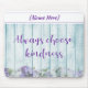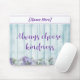 Schönes Mauspad mit blauer und lila Farbpalette und Blumendesign. IMMER WÄHLEN KINDNESS ist auf dem Imitat Holzzaun geschrieben in dekorativen Schriften über den Blume. Personalisieren Sie mit Ihrem/Empfängernamen!