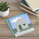 Eine personalisierte Gratulationskarte für einen neuen Hausbesitzer mit einem charmanten Design, das die Freude an einer neuen Zuhause feiert. Im Mittelpunkt steht die kreative Typografie, die herzerwärmende Phrasen über Zuhause zeigt, wunderschön überlagert auf einem malerischen Foto eines mit einem Herz geschmückten Hauses, einem fröhlichen Vogel im Vorgarten und einem blauen Himmel. Das Design beinhaltet auch ein benutzerdefinierbares Typografie-Feld, das persönliche Nachrichten oder andere individuelle Anpassungen ermöglicht, um die Karte noch attraktiver zu machen. © Wafa Y. Dahdal - Alle Rechte vorbehalten. WD Art