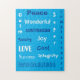 Ein phantastisches Puzzle mit einem inspirierenden Thema, positive Wörter werden auf blauem Hintergrund mit blau-weißem Schriftart angezeigt. Verändern Sie den Hintergrund einfach zu Anzug.