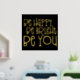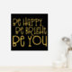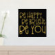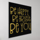 Inspirier Be Happy Be Bright Be You Black Luxury Real Foil in Ihrer Wahl von Gold oder Silber für dieses aufregende Sprichwort auf einem klassischen schwarzen Hintergrund, die Sie ändern können, um eine andere Farbe, wenn Sie möchten.