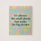 Es ist immer die kleinen Stücke, die das große Bild machen. Das erinnert uns daran zu investieren, aufzutauchen und uns auf jeden Moment und jedes Detail zu konzentrieren, um wirklich zu sein. Wenn man dieses Puzzle Stück für Stück macht, meditiert man über diese Inspiration und man stellt sich dieses Ideal. Der Tag mit 5 Minuten dieses Puzzles gibt Ihnen den Fokus, den ganzen Tag über anwesend zu sein.