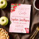 Mit dieser inspirierten Apfel-Dusche lassen Sie sich etwas Süßes ausklingen! Mit einem Apfelbaum mit Äpfeln, begleitet von einem Single Apfel und Scheiben, ist diese Einladung rustikal und böhmisch mit genau den richtigen Mengen an Modernität und Weiblichkeit. Mit einem roten Aquarellhintergrund, der die klassischen und kursiven apfelroten Schriftart unterstreicht, ist diese Einladung perfekt für Ihr Brautparty, Polterabend oder Ihre Babydusche!