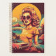Ein großes Retro-inspiriertes Notebook Das Notizbuch bietet ein KI-Image einer Vintag/Retro-inspirierten Frau, mit dem Hintergrund der Sonne und einem Los Angeles/California-Flair, mit einem altmodischen Vintage-Auto und Palmen und einer Strandszene. Diese von der künstlerischen Intelligenz erzeugten Bilder sind alle originell und einzigartig für Brighton Prints
