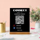 Das elegante, schwarze Podest-Schild, das speziell für kleine Unternehmen konzipiert wurde. Dieses moderne und kühn gestaltete Design besticht durch einen klassischen schwarzen Business-QR-Code für Instagram und Facebook, der Kunden einlädt, sich mühelos mit Ihnen in den sozialen Medien zu verbinden. Dieses schlichte und dennoch mächtige Werbeschild ist ein Ausdruck zeitgenössischer Eleganz. 'Mit uns verbinden'-Eingabeaufforderungen und integrierte QR-Codes machen die Arbeit mit Ihrem Unternehmen nahtlos. Erhöhen Sie Ihre Marke, ziehen Sie Social Media Anhänger an und machen Sie mit diesem schwarzen Podestal-Zeichen einen bleibenden Eindruck. Verbinden Sie sich mit uns - es ist mehr als nur Geschäft; es ist eine moderne Verbindung