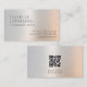 Designed for professionals who value clarity, sophistication, and tech-ready branding, this layout features a brushed metallic gradient background in silver and champagne tones, refined typography, and a scannable QR code for instant contact access.