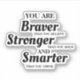 Laptop- oder Notebook-Aufkleber mit inspirierendem Text: "Du bist mutiger, als du glaubst, stärker, als du scheinst, und klüger, als du denkst." Kontaktieren Sie uns für Hilfe bei der Anpassung oder um passende Produkte anzufordern.