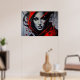 A striking work of art! This female portrait combines facial realism with explosive red and black paint splashes. Penetrating eyes and bold features create a mysterious and elegant atmosphere. Perfect for high-end decor, studios, and lovers of urban and contemporary art.