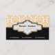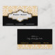 Carte de visite aux intérieurs damassés d'un blanc noir orange, orangé et blanc, damassé. La partie inférieure est de couleur noire solide. Une bande noire et une bande orange séparent les deux parties. Votre entreprise/nom est tapé sur un élégant étiquette damassé avec contour noir et orange.