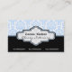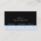 Carte de visite aux intérieurs damassés noirs, bleus et blancs, aux motifs damassés bleus et blancs. La partie inférieure est de couleur noire solide. Une bande noire et une bande bleue séparent les deux parties. Votre entreprise/nom est tapé sur un élégant étiquette damassé aux contours noir et bleu.