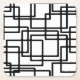 Interlocking Black Squares Artistic Design ist ein origineller künstlerischer Vektor von Quadraten im mondrianischen Stil . Ein einzigartiges minimalistisches Design und Komposition in Schwarz und Weiß. Ideal für diejenigen, die abstrakte Kunst oder Neo-Plastik-Thema in Bekleidung und Dekoration.