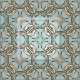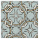 Schleife wie Formen in Creme umrissen in schwarzem Bindegarn zu einem komplexen, auf keltischen Knotenkunstwerken basierenden Muster. Die weiche, abgedämpfte, blaue Hintergrundfarbe dieses Stoffes, die in einer Reihe von Fasertypen erhältlich ist, lässt sich leicht anpassen, um Ihren Stil Anzug.