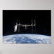 Die internationale Raumstation, die im Hintergrund des Horizonts der Erde liegt, wurde mit STS-128 vorgestellt.