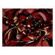 Auf dem Poster stand das Gemälde "Intimate Still Life with Incident" von Carmen Fine Art in Rot-Orange-, Gelb- und Weißtönen in einem abstrakten, farbenfrohen Designstil. "Das "reine" Rot, von dem einige Abstraktionisten sprechen, existiert nicht. Jedes Rot wurzelt in Blut, Glas, Wein, Jägerkappen und tausend anderen Betonphänomenen. Andernfalls hätten wir kein Gefühl zu Rot und seinen Beziehungen..." (Robert Motherwell).