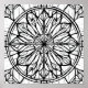 A highly detailed Stained-Glass Sketch featuring intricate black lines that mimic traditional glass leading. This complex line art pattern uses symmetry and geometric precision to create a beautiful, segmented design (such as a floral motif or geometric abstract). Perfect as a high-contrast piece of apparel or a print-your-own coloring page template.
