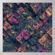 A full-color seamless abstract that emphasizes the pure geometric complexity of the fragmented circuits. This design highlights the sharp angles and dense arrangement, creating a hypnotic, micro-fractal aesthetic where the pattern feels endless and mathematically chaotic.