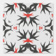Intricate Sharp Black Red Motifs on Light Gray Tapete