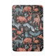 Illustrated woodland animals in red and blue, including foxes, bears, owls, and deer, are adorned with intricate patterns on a black background.